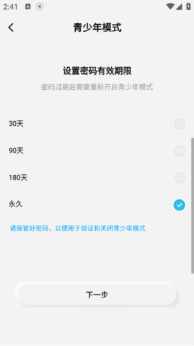 5、随后需要根据自己的需求选择一个合适的密码有效期。