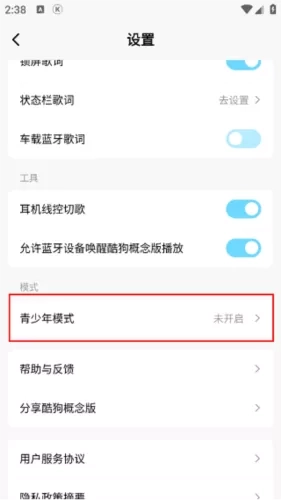 3、点击一下即可来到新的页面,在给出的选项列表中点击“青少年模式”。
