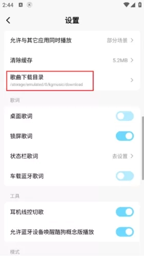 3、然后在打开的“设置”窗口中,需要向上滑动屏幕,点击其中的“歌曲目录”选项。