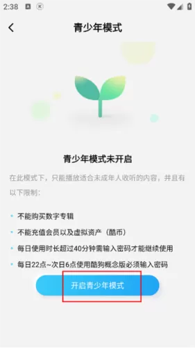 4、然后在打开的新窗口中,点击下方中的“开启青少年模式”按钮。