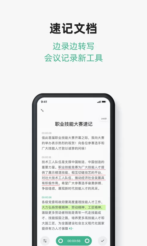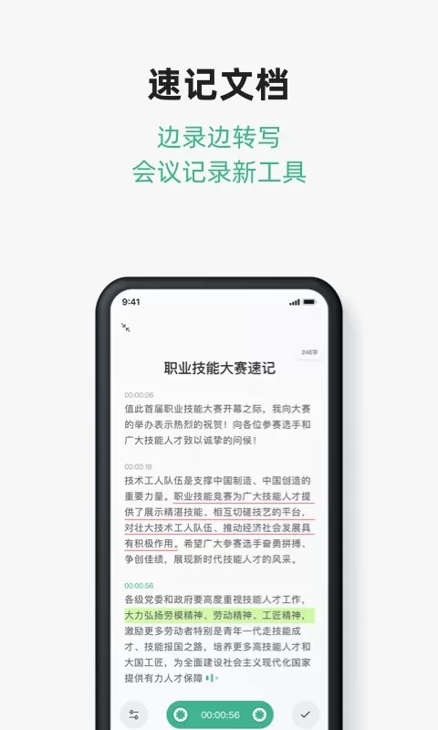 3、支持音视频内容转写为笔记。高效预约会议时间、会中默读共享文档并实时评论协同。