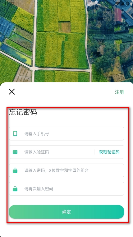 请输入手机号码、验证码、密码以及再次输入密码,之后点击确定按钮就可以了。