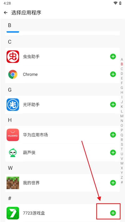 在首页点击右下角的“+”号,随后就能看到设备里安装的所有应用了。