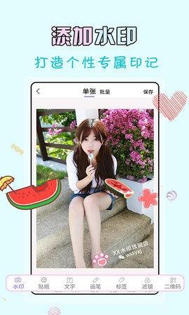 微商水印王是一款广受欢迎的应用软件,其主要特点如下:支持批量添加水印,用户可一次性为多张图片添加水印,有效提升工作效率;多款精美水印模板,用户能根据自身需求挑选合适的模板;除文字水印外,还具备标签、贴纸、马赛克、圈框画笔、突显效果、滤镜等功能,充分满足用户对水印样式多样化的需求;此外,软件还提供裁剪功能,用户可在添加水印的同时对图片进行裁剪,操作便捷高效。