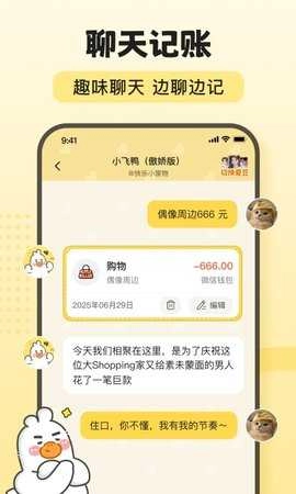 飞鸭AI记账是一款融合了人工智能聊天功能的记账应用,致力于为用户打造轻松愉悦的财务管理体验。用户既能在此记录日常开销,又能和自定义的爱豆角色互动,体验边聊天边记账的趣味。借助这种贴心的陪伴式聊天,用户在记账的同时也能收获情感支持,真正达成了记账与情感价值的融合。