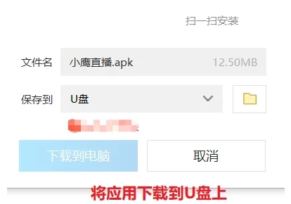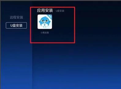 打开U盘设备后,找到之前准备好的【小鹰直播电视版】安装包,点击开始进行应用安装。