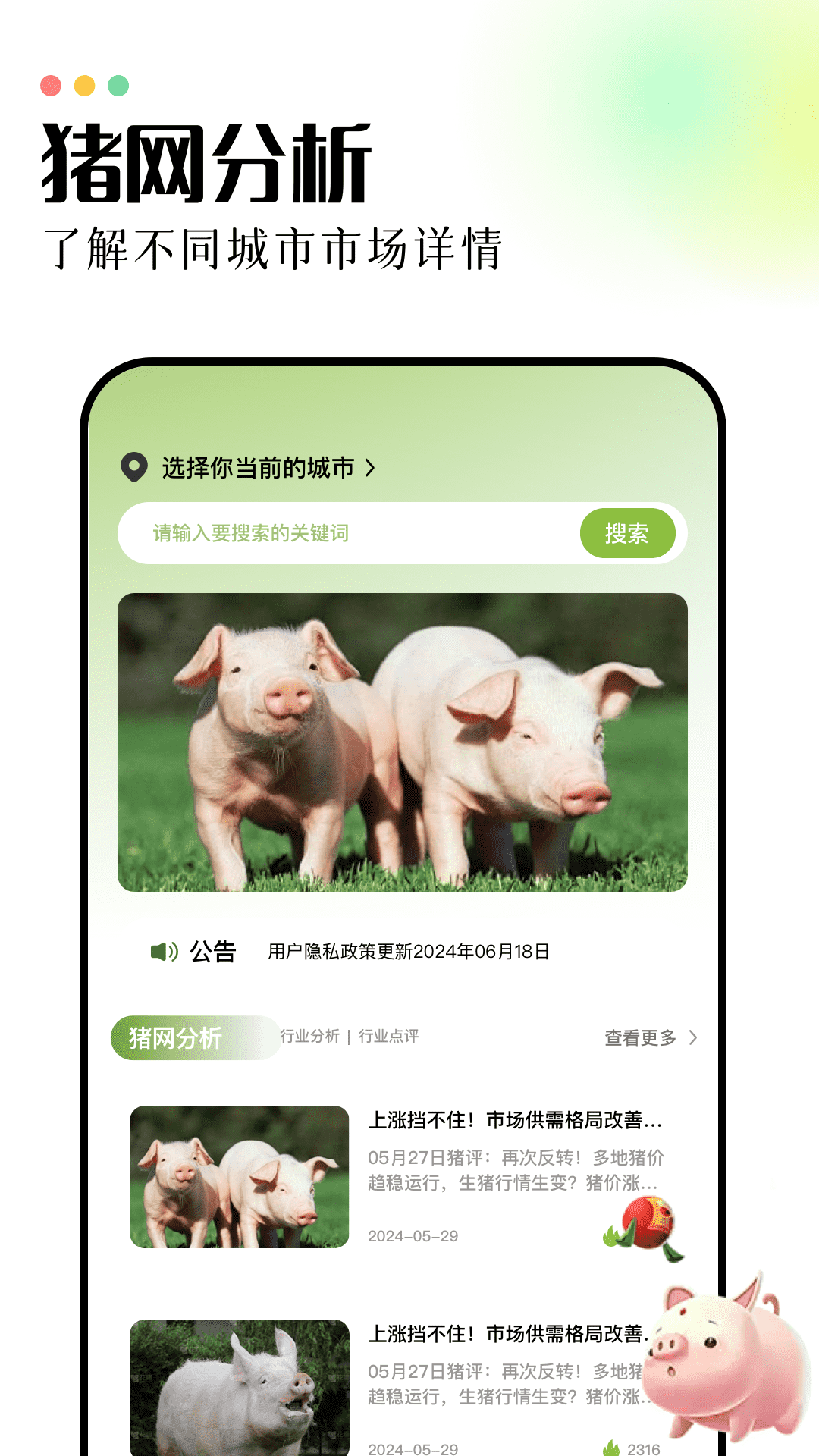 田园养猪场是一款面向养猪从业者、爱好者及对此领域感兴趣人群的养猪科普与攻略软件。它既适用于创业大学生和辛勤的养殖人员,也为广大用户提供了丰富的养猪知识与实用的养殖技巧,助力他们更深入地了解养猪行业的运营与管理。借助这款应用,用户能够轻松获取最新的养殖动态、科学的养猪方法以及市场行情分析,为养殖事业的发展提供了坚实的支持。