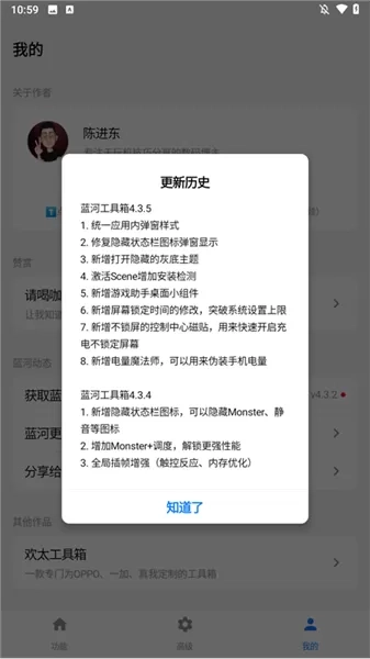 3、能够查看版本更新记录,还能顺便分享给朋友使用。