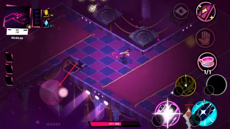 1、进入游戏后,左侧的摇杆控制人物移动。