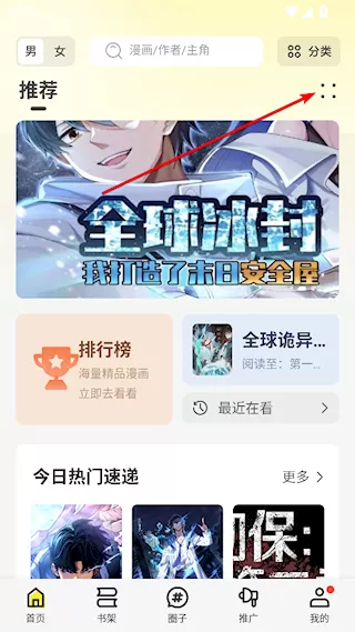 2、要是在首页没发现心仪的漫画,不妨点击上方的搜索栏,搜索自己喜欢的漫画作品。