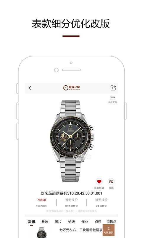2. 腕表比较:可对多款腕表进行同步比较,助力用户从外观、功能、价格等多维度进行抉择。