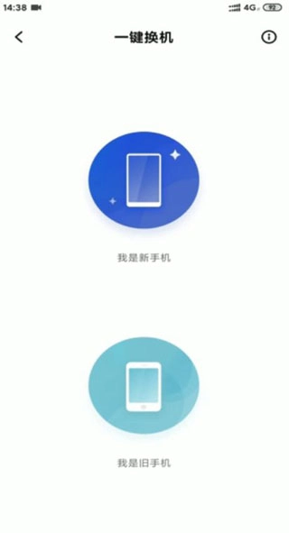 若需从小米手机转移数据到其他新设备进行换机操作,可点击“我是旧手机”,随后开启新手机的一键换机功能。