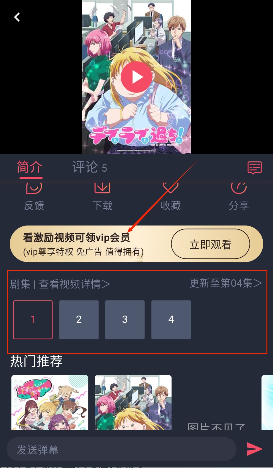 打开软件,主页会有着系统推荐的一些番剧;