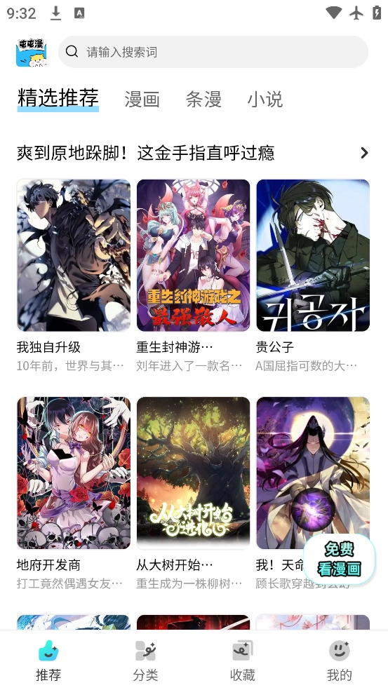 在主页涵盖多个热门漫画,滑动即可选择。