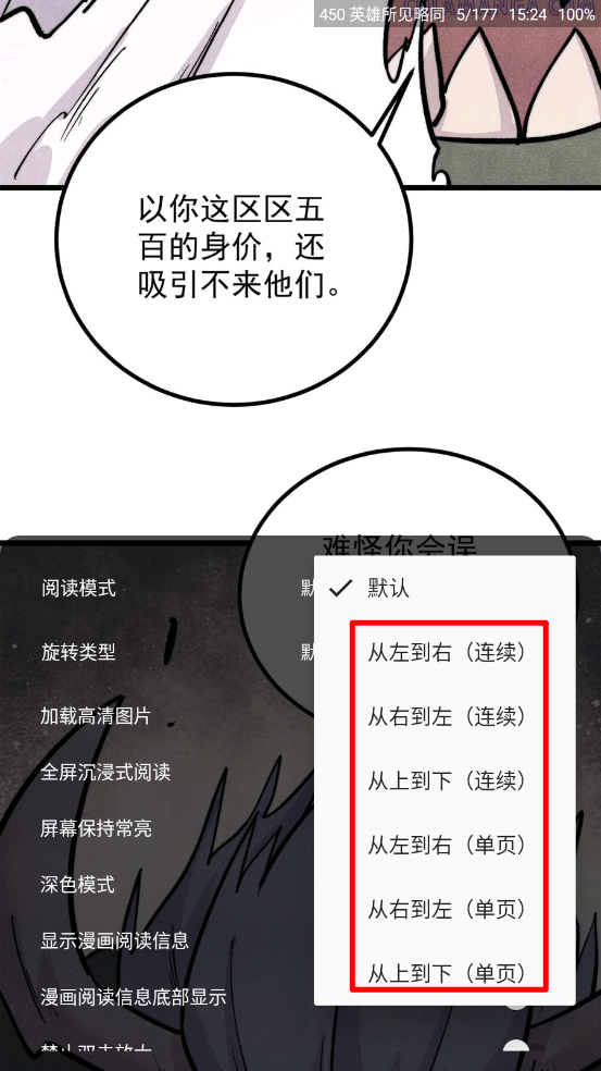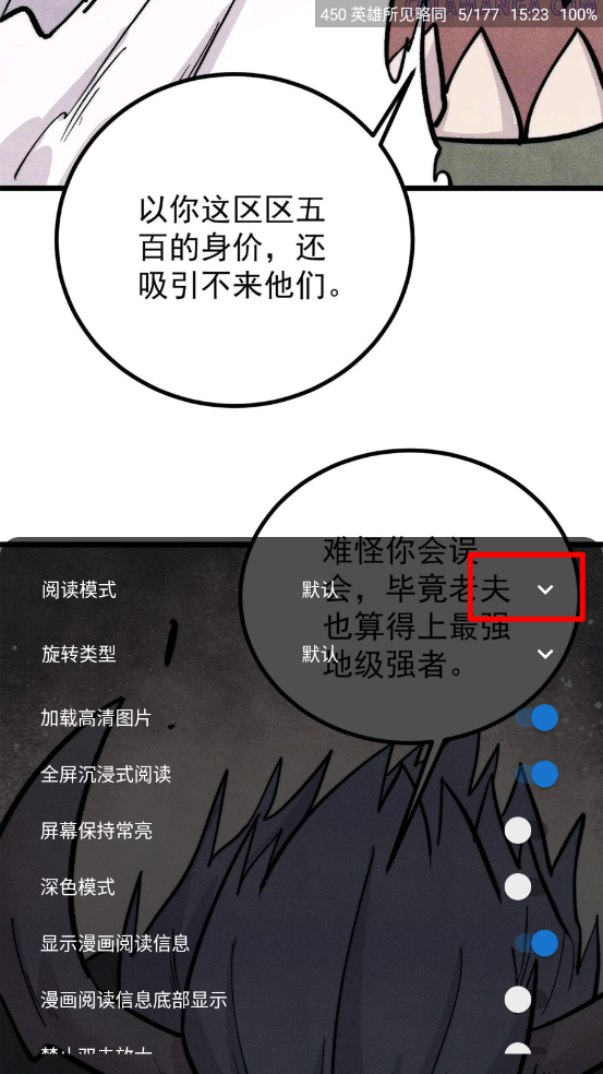 打开软件后,进入漫画阅读界面,轻点屏幕中间区域即可调出菜单。
