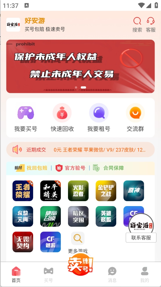 好安游作为专业的账号交易平台,拥有丰富的游戏账号资源,涵盖端游等多种类型。平台上所有账号均经过严格审核后才予以上架,性价比颇高,交易完成后资金秒速到账。此外,专业客服团队随时为您解答疑问,确保交易过程安全可靠,助力玩家更顺畅地完成账号交易。