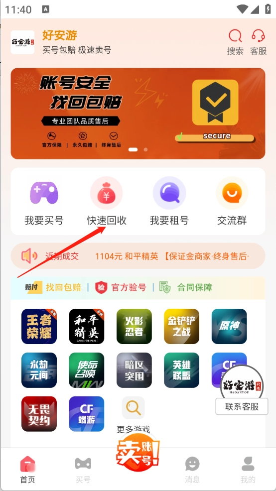 富含了各类游戏,除了,还有端游以及页游的各种账号,全面的游戏账号的交易。