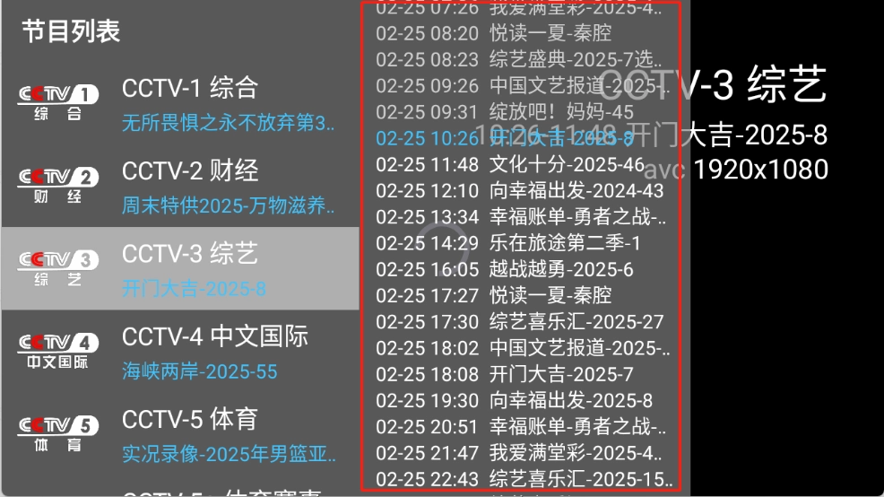 进入之后,点击屏幕任意位置,左侧栏就会显示出众多电视频道。