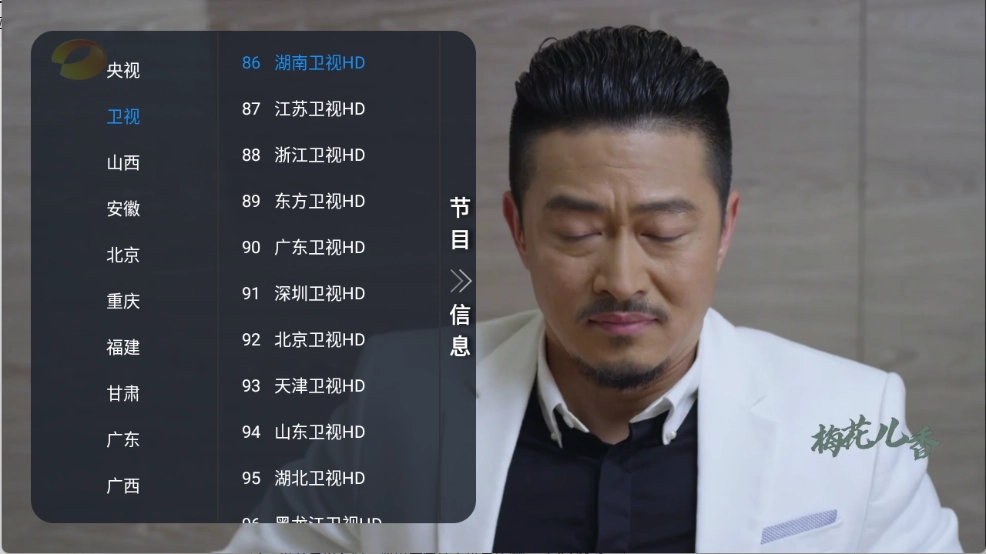 进入首页后,点击屏幕任意位置,左侧栏便会呈现众多电视频道,涵盖央视、卫视和地方频道等。