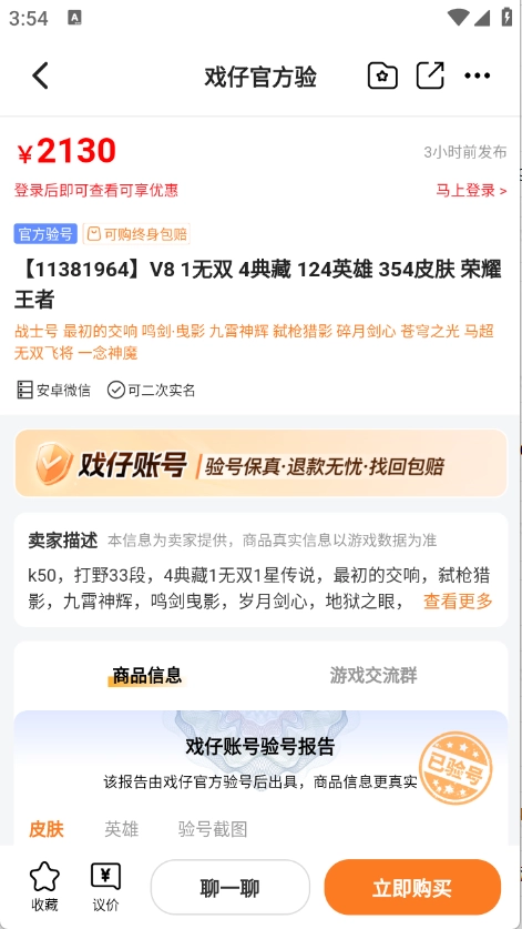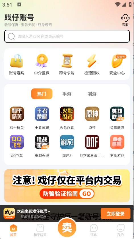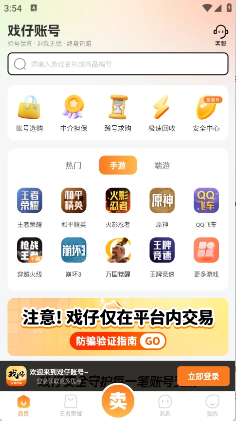 支持账号交易,提供实名认证、账号核验及担保交易服务,确保交易流程合法合规且安全可靠。