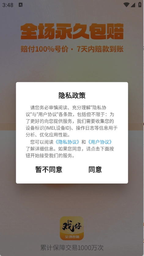 用户首先需要在3G游戏网注册戏仔账号,并同意平台的隐私政策与用户协议。