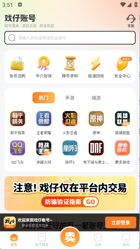 能选择、端游的账号去无风险的交易,使用更便利。