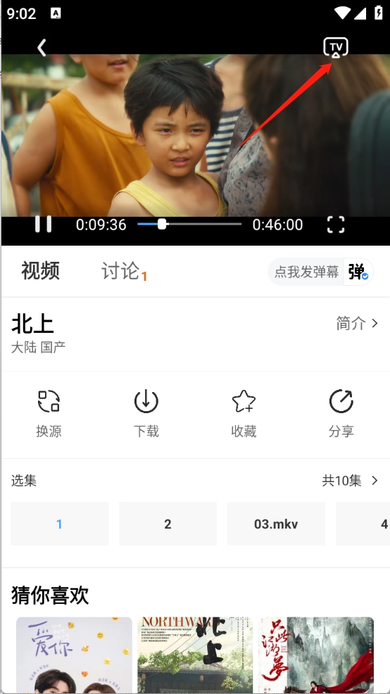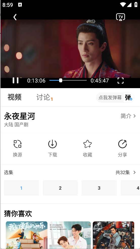 用户点开想看的影视资源后,能进行选择集数、切换播放源和查看弹幕这些操作。