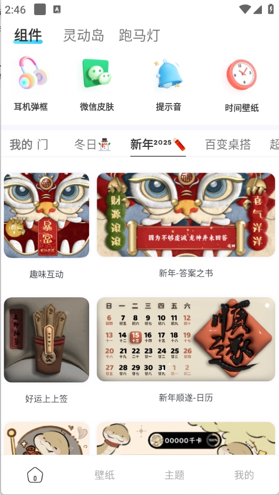 首页里有各式各样丰富的组件样式,无论是节日氛围类的,还是契合不同季节主题的,都能找到。