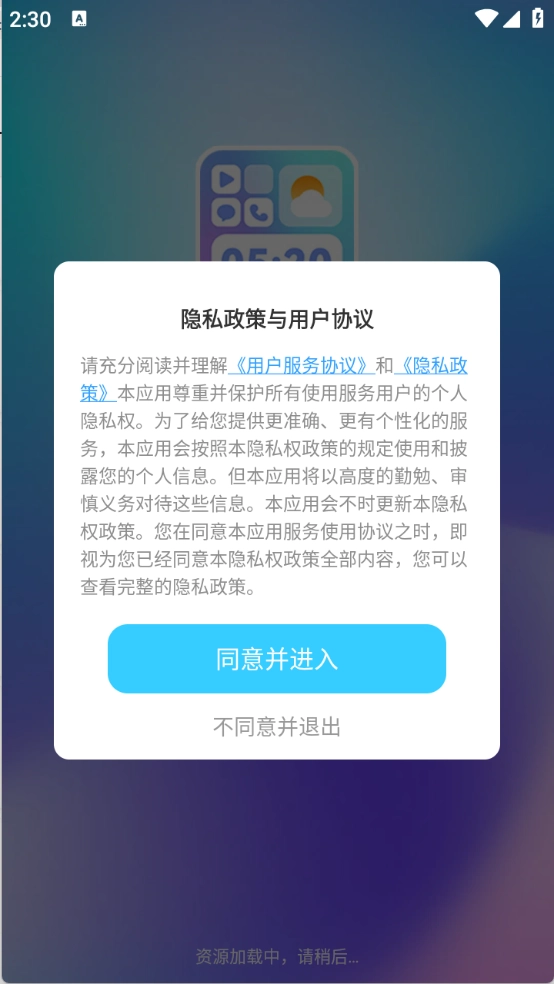 首先在3G游戏网的万能主题组件中,查看并同意隐私政策和用户协议。
