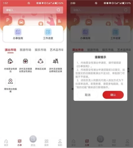 经营主体通过应用提交演出市场、旅游市场、娱乐市场、艺术品市场、上网服务网络文化等多个领域。