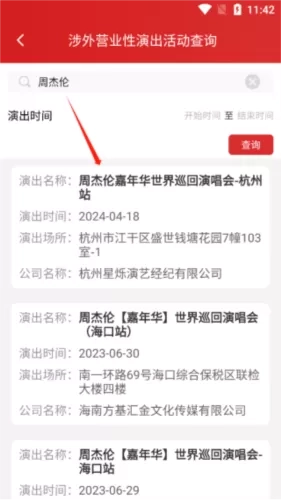 3、比如周杰伦演唱会安排,搜索周杰伦,就可以看到相关信息了