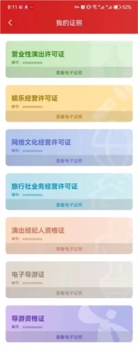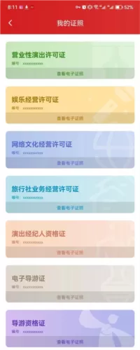 文化和旅游经营主体、从业人员可通过应用进行实名实人认证后申领电子证照,并进行扫码亮证、查看原件、查询详情等应用,对证照信息有异议的可进行线上纠错。