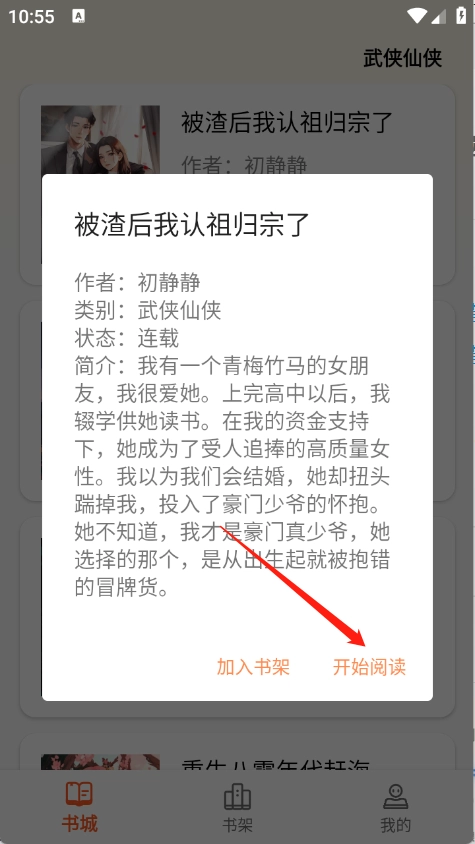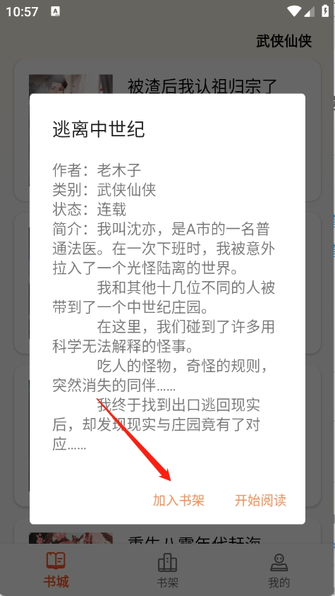 进入首页后,找到你想看的小说并点击进入阅读页面,然后点击“加入书架”按钮。
