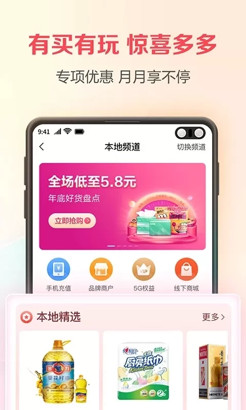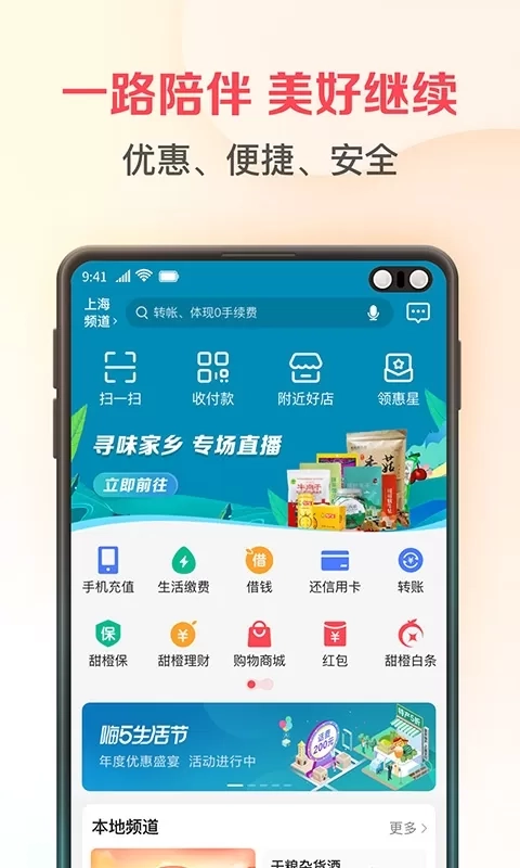 4、本地化生活服务:O2O商超、加油支付服务,周五六日常态95折+更多营销活动,折扣多多,便利十足;