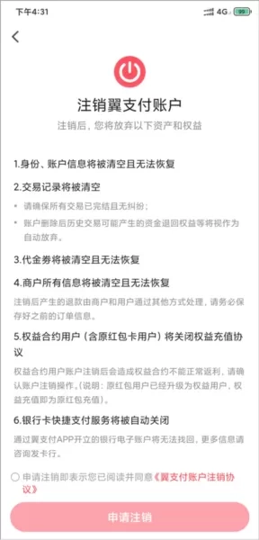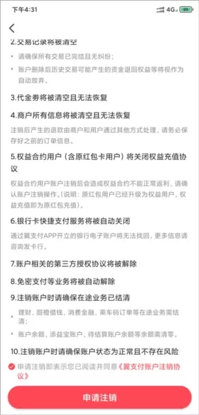 6、同意注销协议,点击“申请注销”即可成功取消。