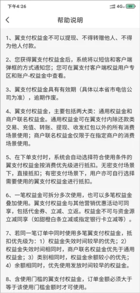 3、您在使用翼支付进行消费时,若符合权益金使用条件则可在实际支付时使用。