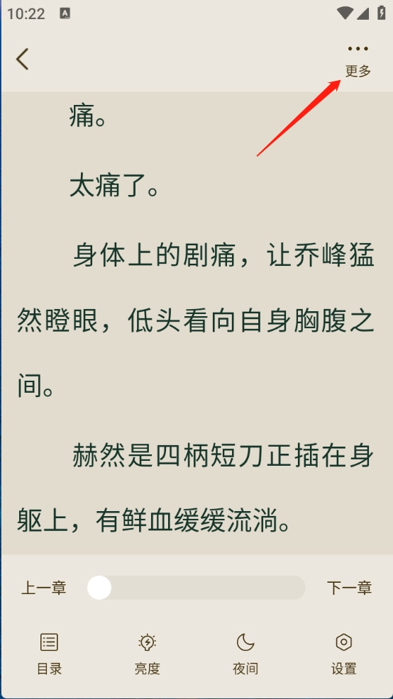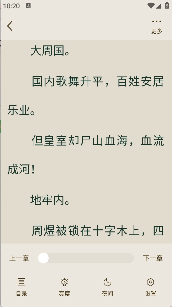 用户打开想要阅读的小说资源后,通过左右滑动就能切换到下一页,并且可以对小说页面进行多种设置。