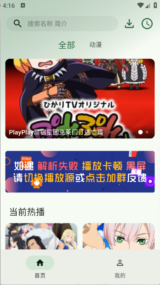 进入首页后,首页页面会为用户展示当前热门的动漫资源。