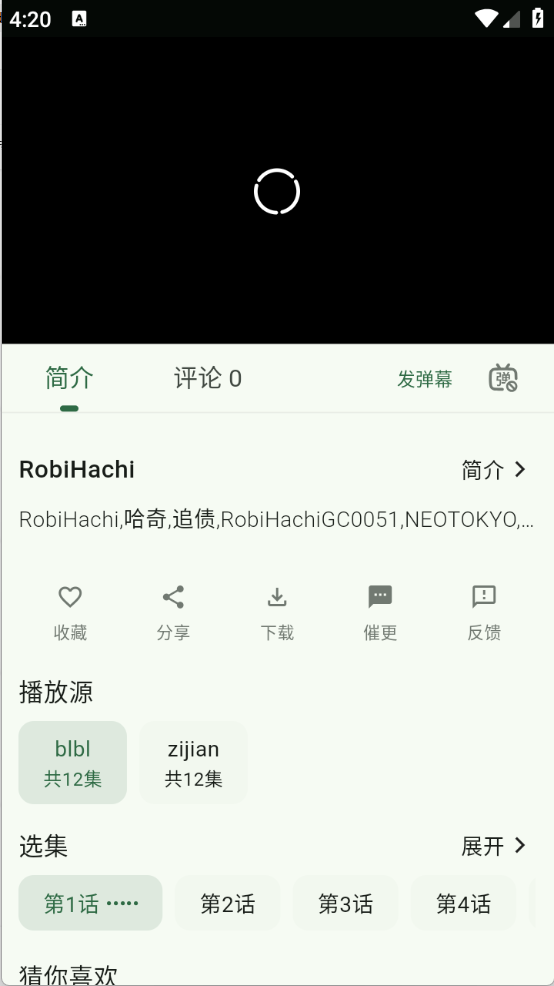 用户打开自己喜欢的动漫资源后,既能够挑选具体的集数,也可以更换播放源。