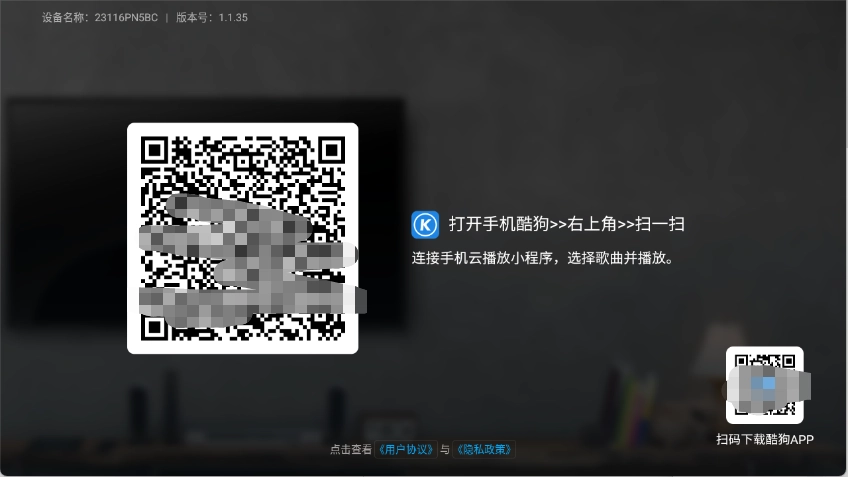 在本站使用酷狗云播放TV版时,打开软件后请同意相关软件政策。