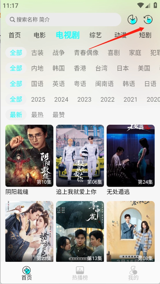 进入首页,点击右上角的历史按钮。
