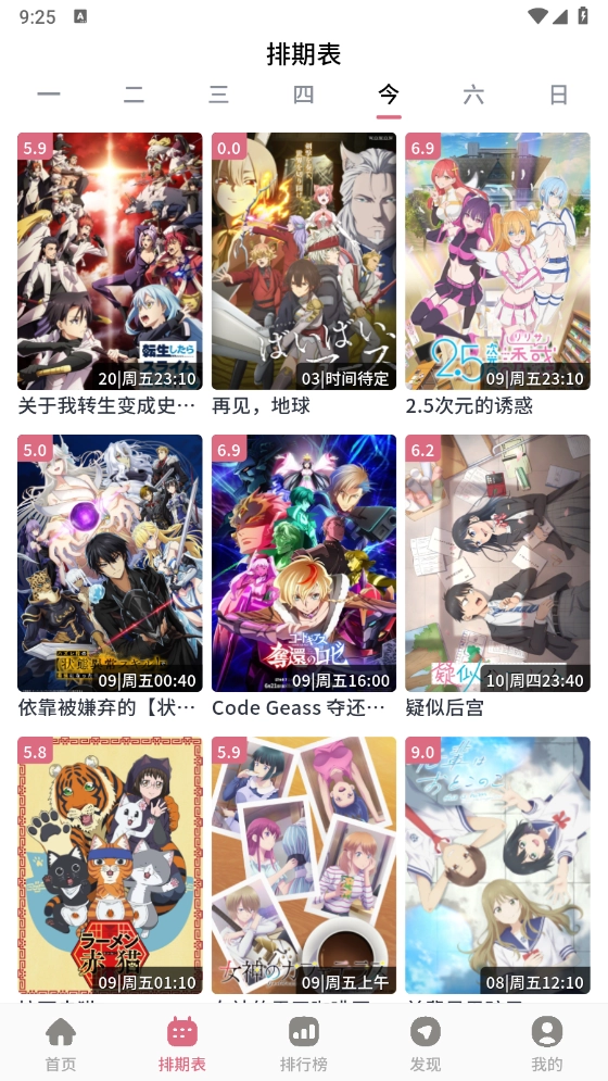 无论是首页、排期表还是排行榜页面,都有大量动漫可供挑选。