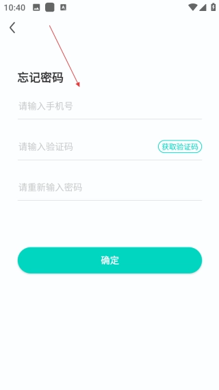 在忘记密码页面,输入已绑定的手机号,以便获取验证码完成验证。