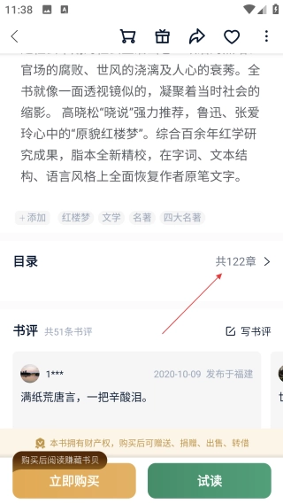 在书籍详情页面,点击【目录】选项,即可查看该书籍的章节列表内容。
