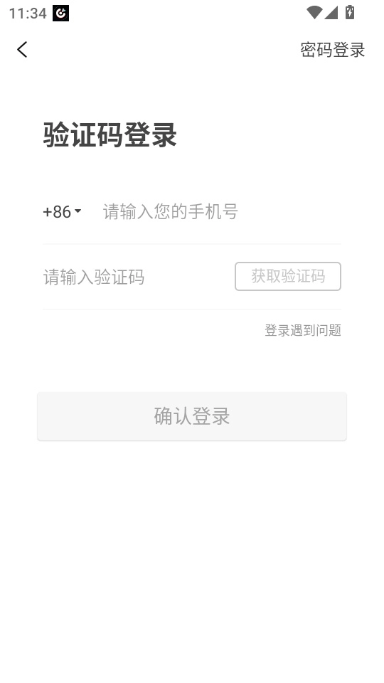 在“验证码登录”的菜单界面,输入手机号和验证码,随后点击“确认登录”按钮,即可进入程序。