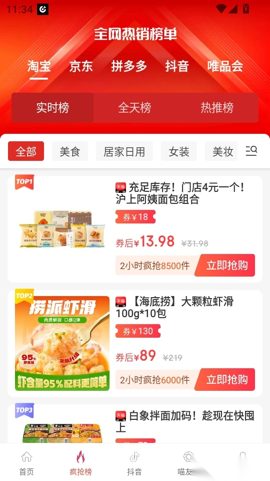 之后进入“全网热销榜单”界面,找到对应的商品链接并点击“立即抢购”按钮,即可进入后续操作环节。