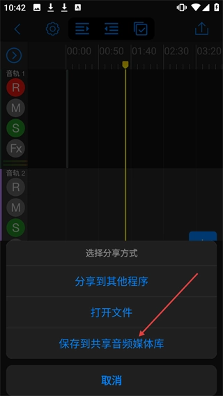 导出操作完成后,在分享选项里选择【保存至共享音频媒体库】,这样就能完成音频的保存步骤了。
