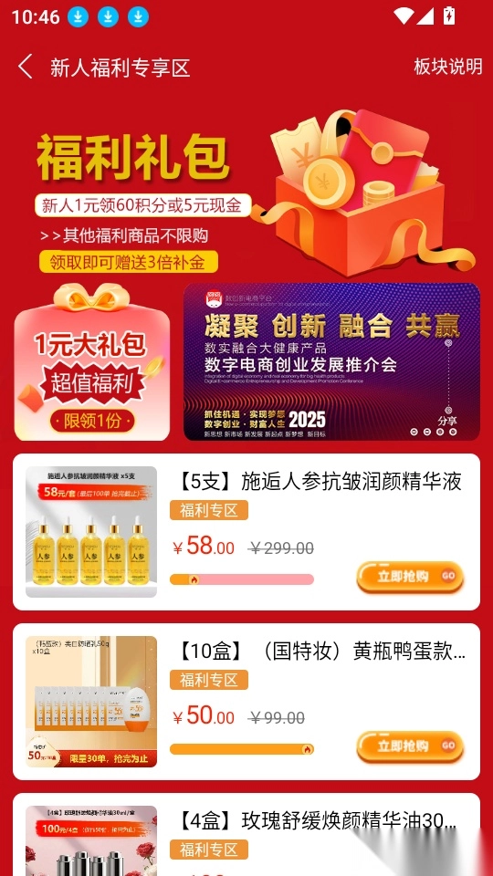 进入软件首页后,在功能模块里点击“新人福利”按钮即可开展下一步操作。