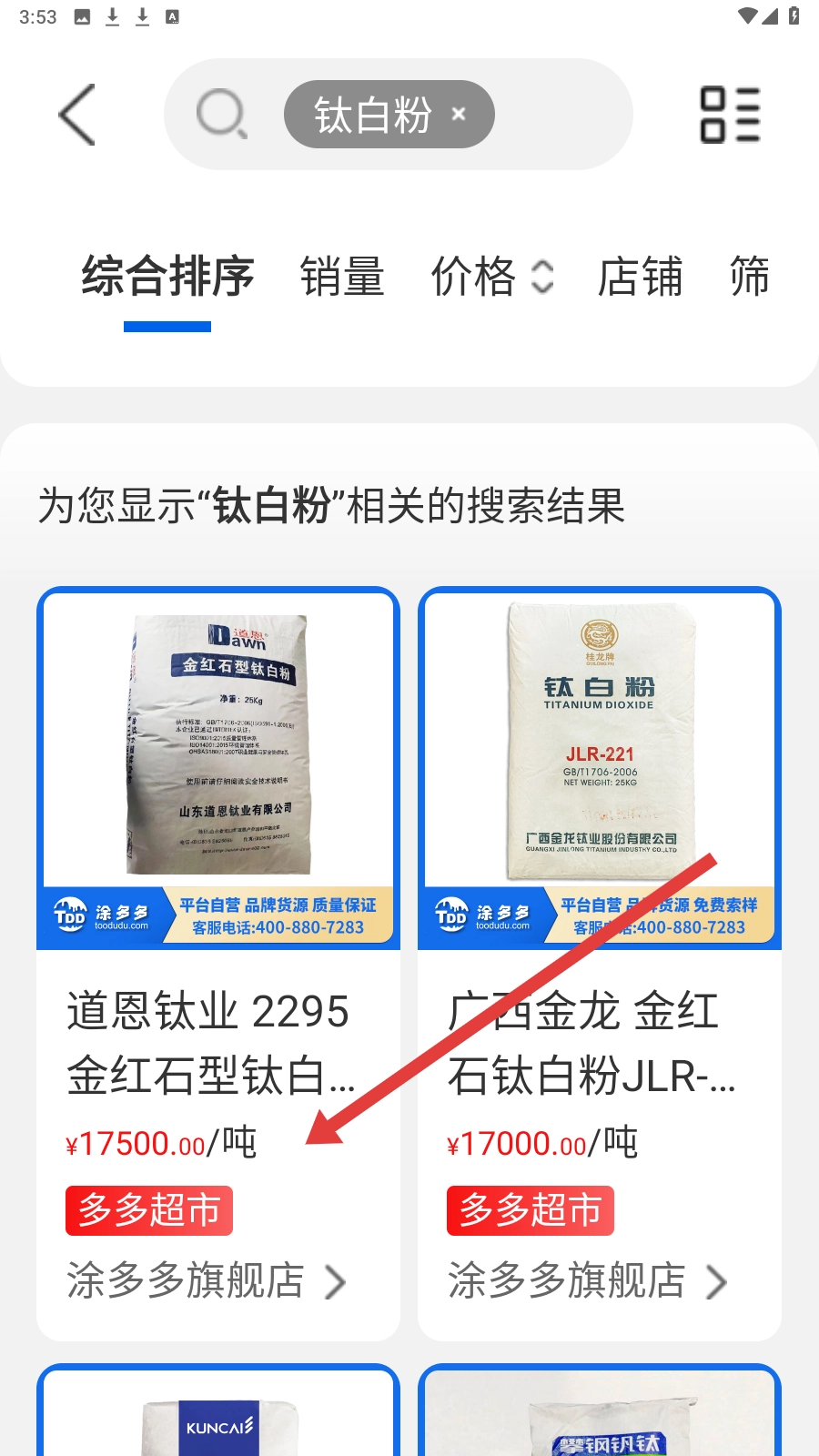 在钛白粉商品列表中,找到你感兴趣的商品,比如【道恩钛业红石型钛白粉】,点击它就能进入商品详情页面。