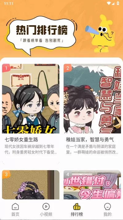 熊猫头漫画短剧,堪称以魔性熊猫头表情包为核心的爆笑短剧天地。在这里,无厘头的幽默跟充满奇思妙想的剧情无缝衔接。不管是职场打工人那些奇葩趣事,还是穿越古今的搞怪脑洞情节,每一集仅3分钟,就能让你笑得前仰后合。不仅如此,它还设有一键分享至朋友圈的便捷功能,方便你和好友一同畅享这份欢乐。喜爱此类短剧的朋友们,赶紧加入吧!